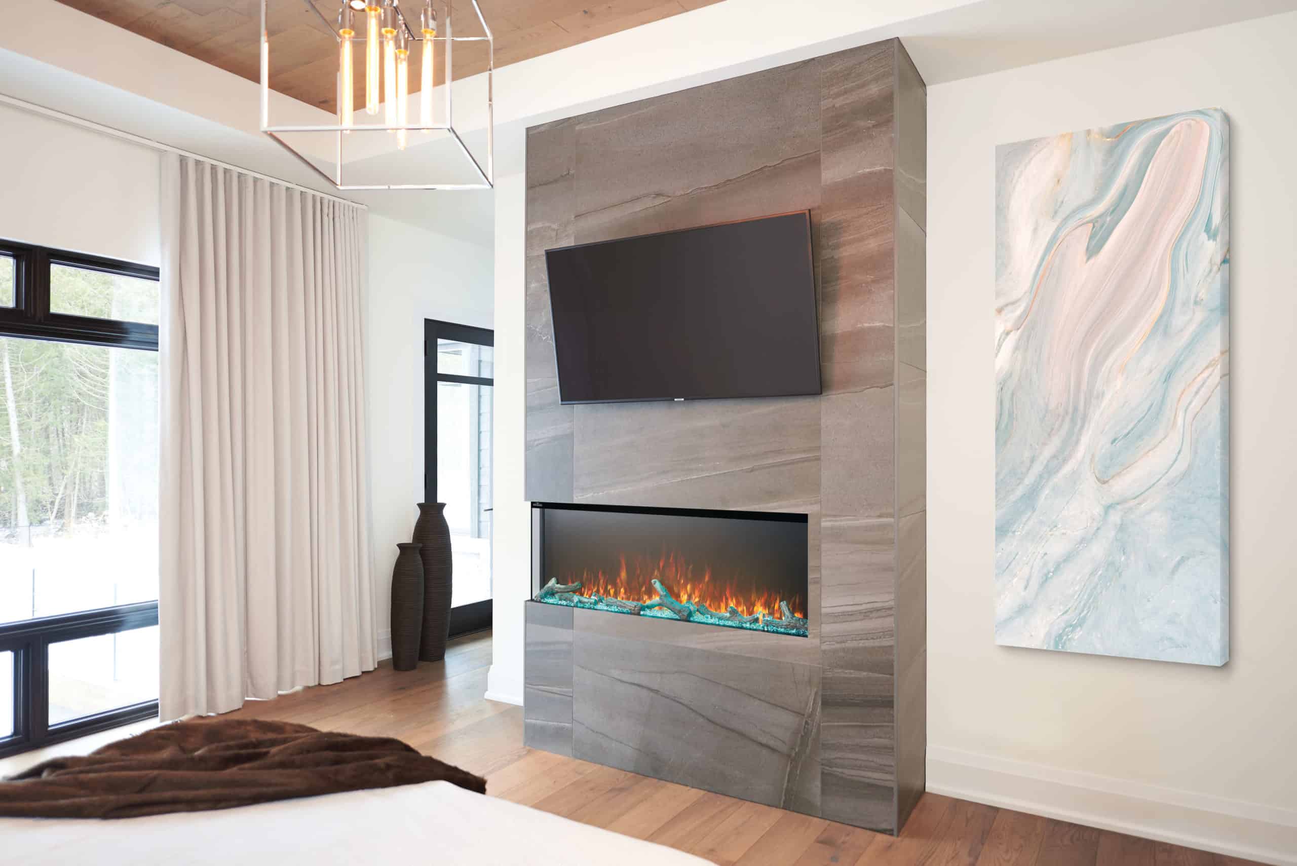 The entice ™ linear electric fireplaces can be hung or recessed and are ideal for adding the luxury of a fireplace to every space.